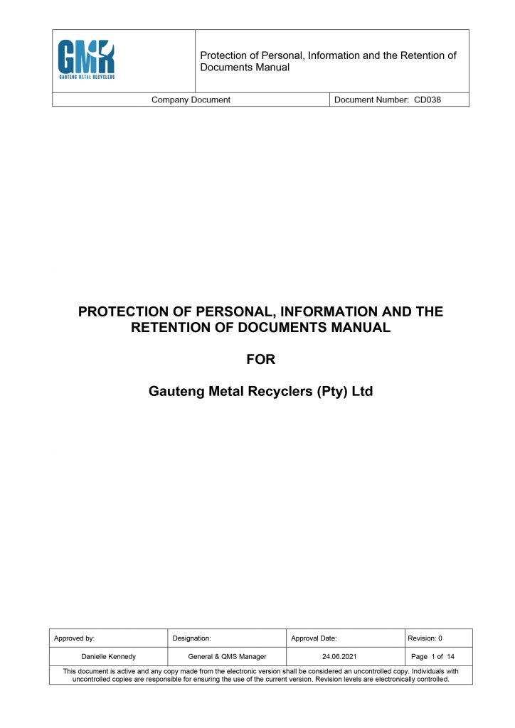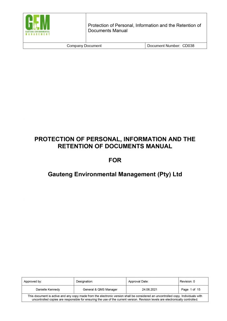 POPI AND PAIA MANUAL GEM