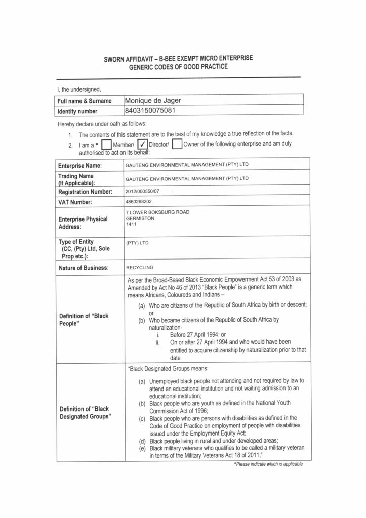 BBBEE VERIFICATION CERTIFICATE
