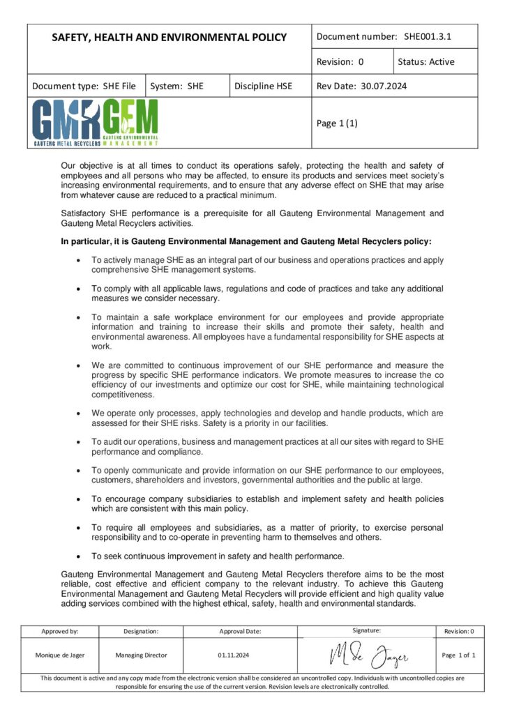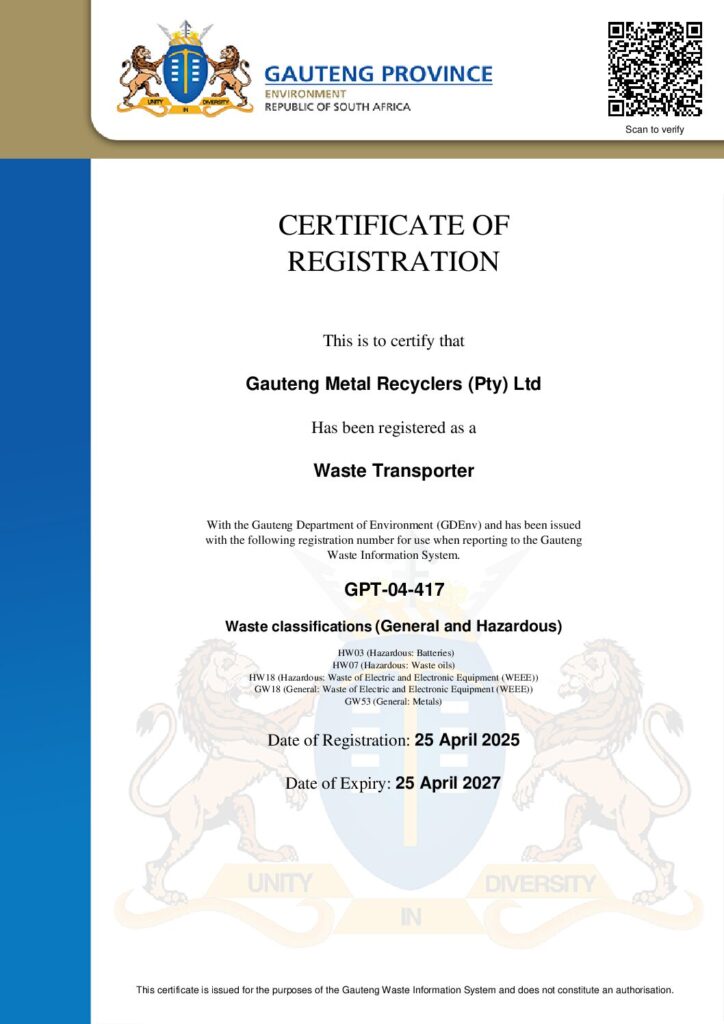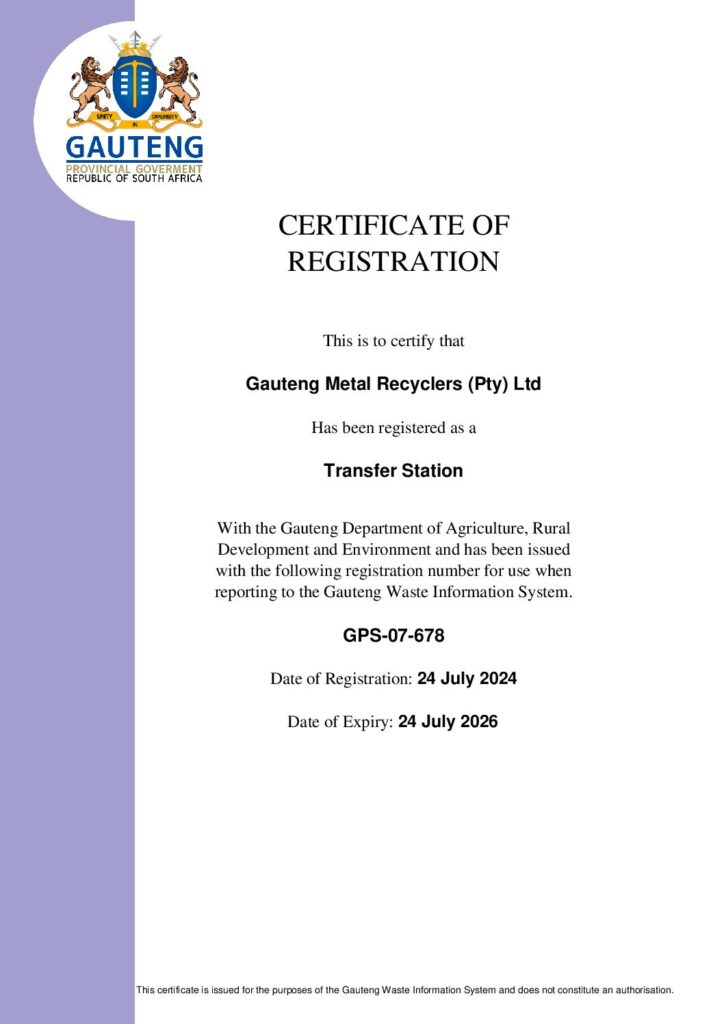 GAUTENG METAL RECYCLERS & GAUTENG ENVIRONMENTAL MANAGEMENT PARTNERSHIP