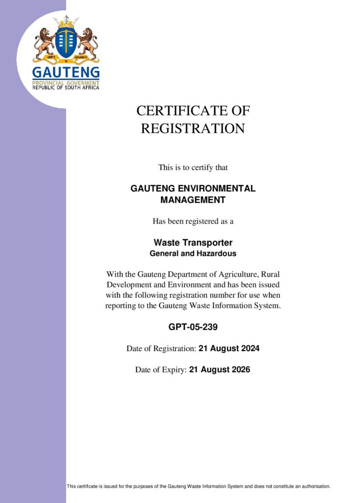 GEM WASTE TRANSPORTER CERTIFICATION